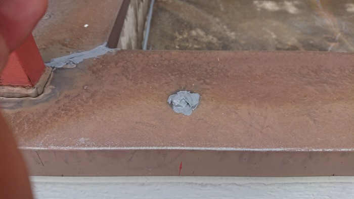 笠木が台風にやられて、釘が浮いてきてましたので、釘を打ち直してコーキングをしました。